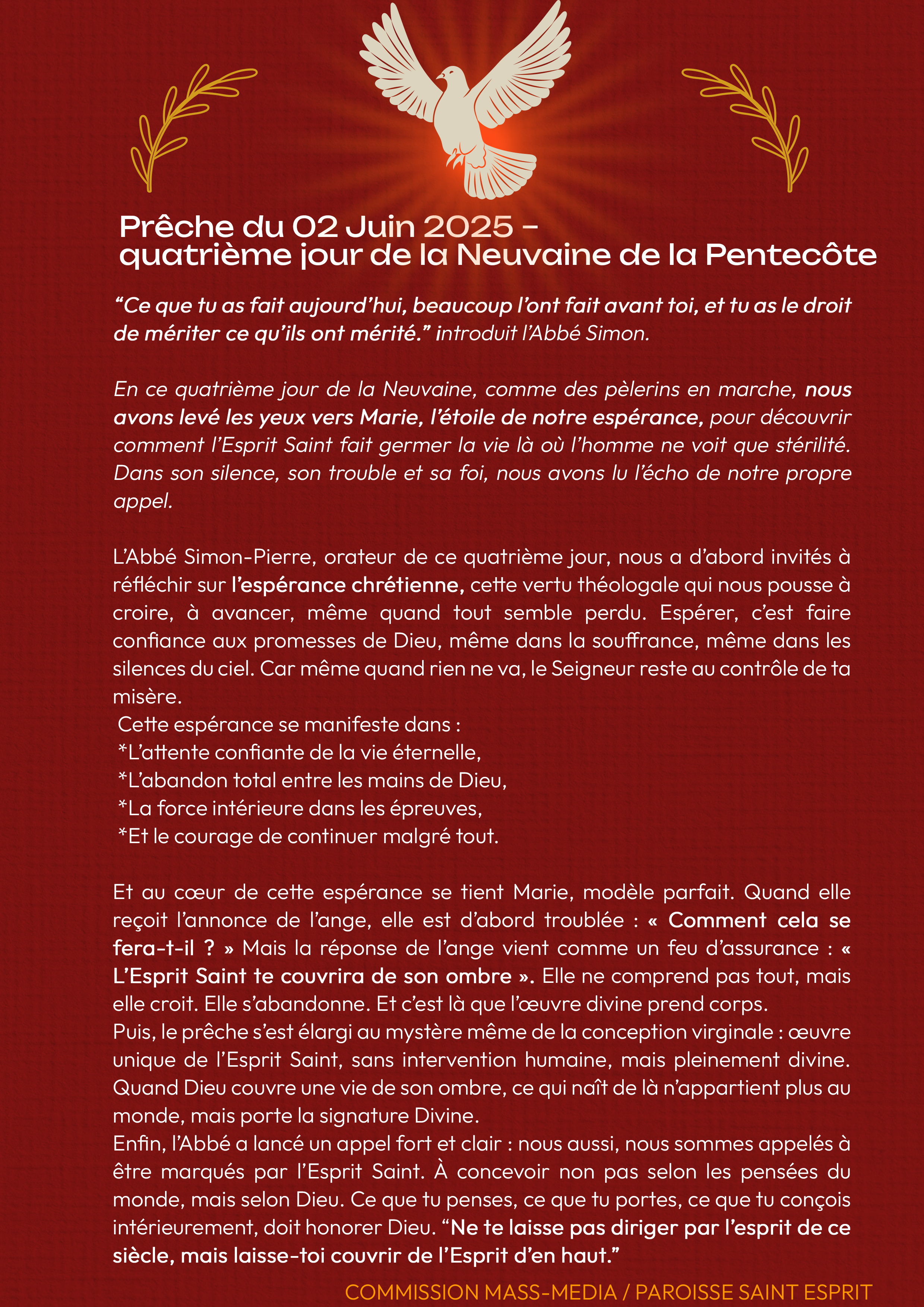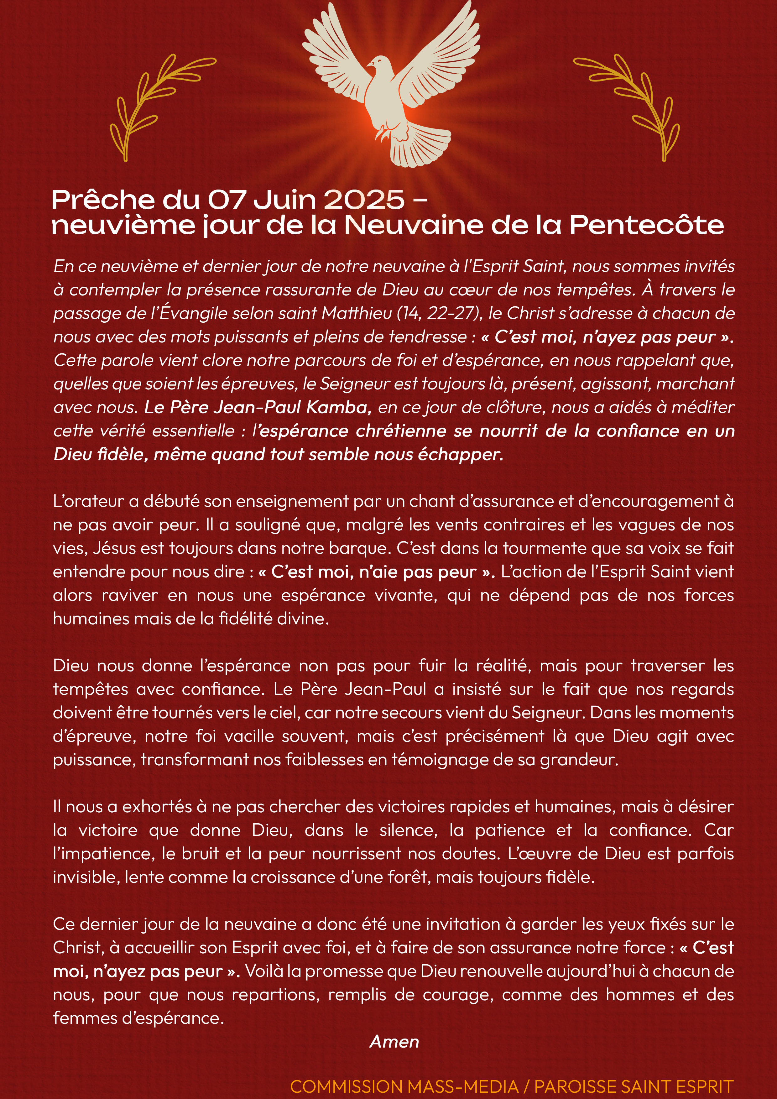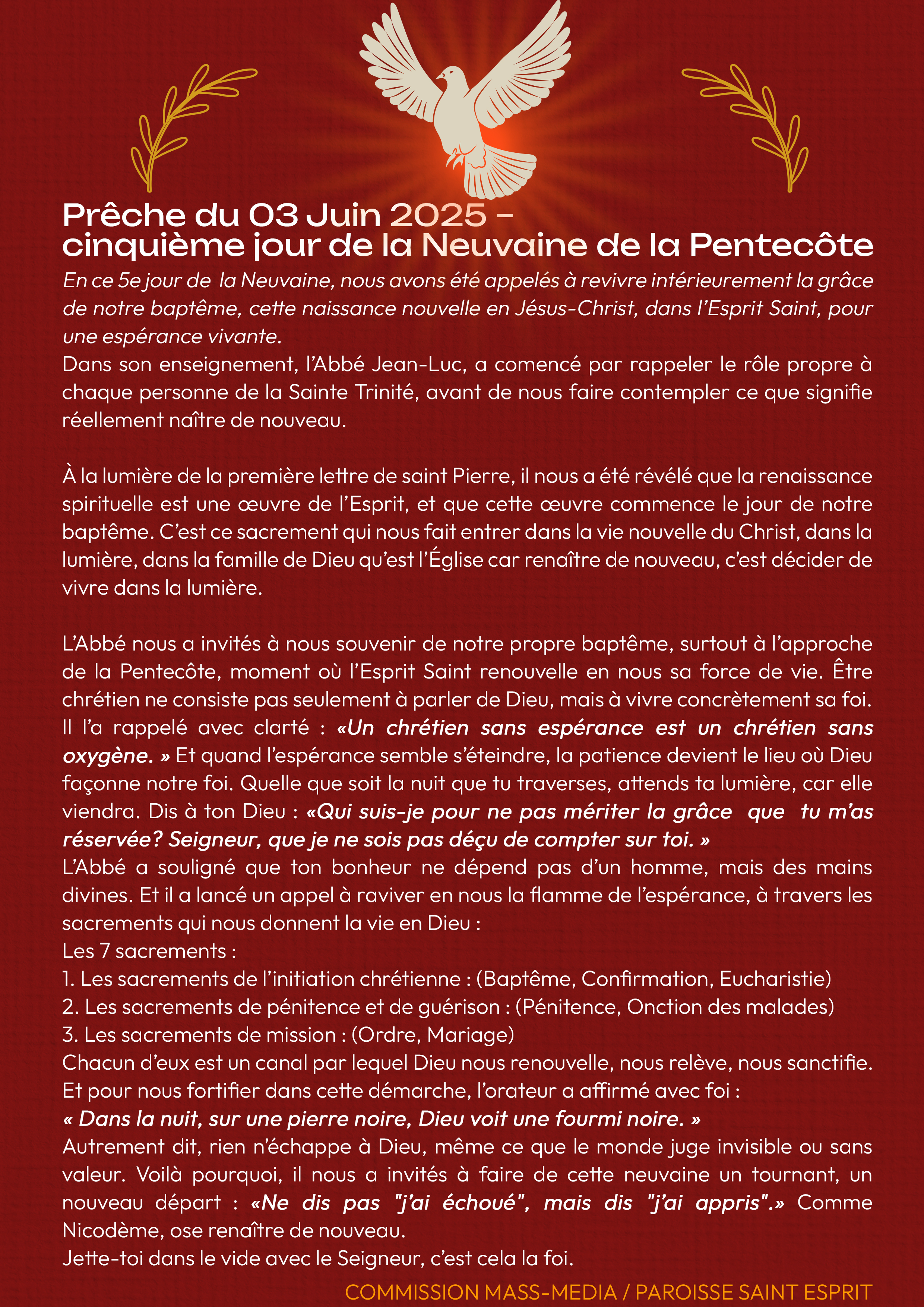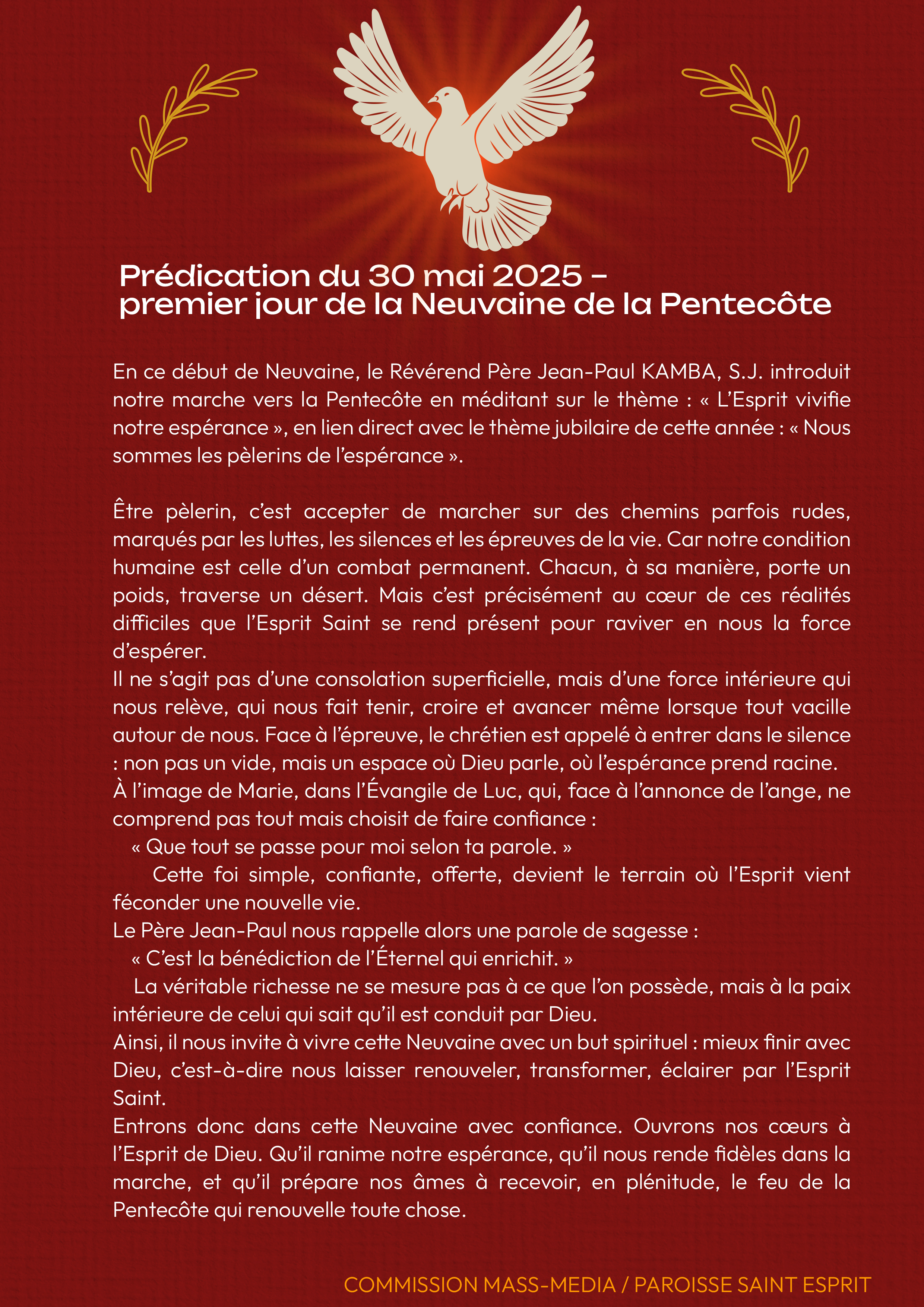 Retrouvez toutes les homélies jour après jour de la neuvaine de la Pentecôte.