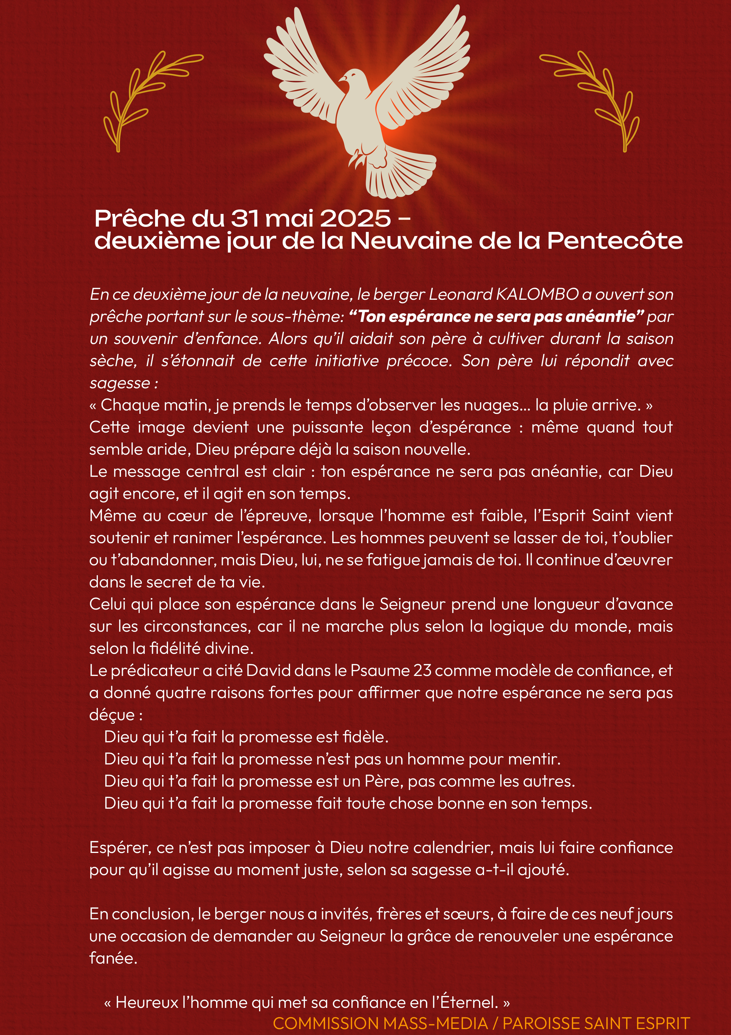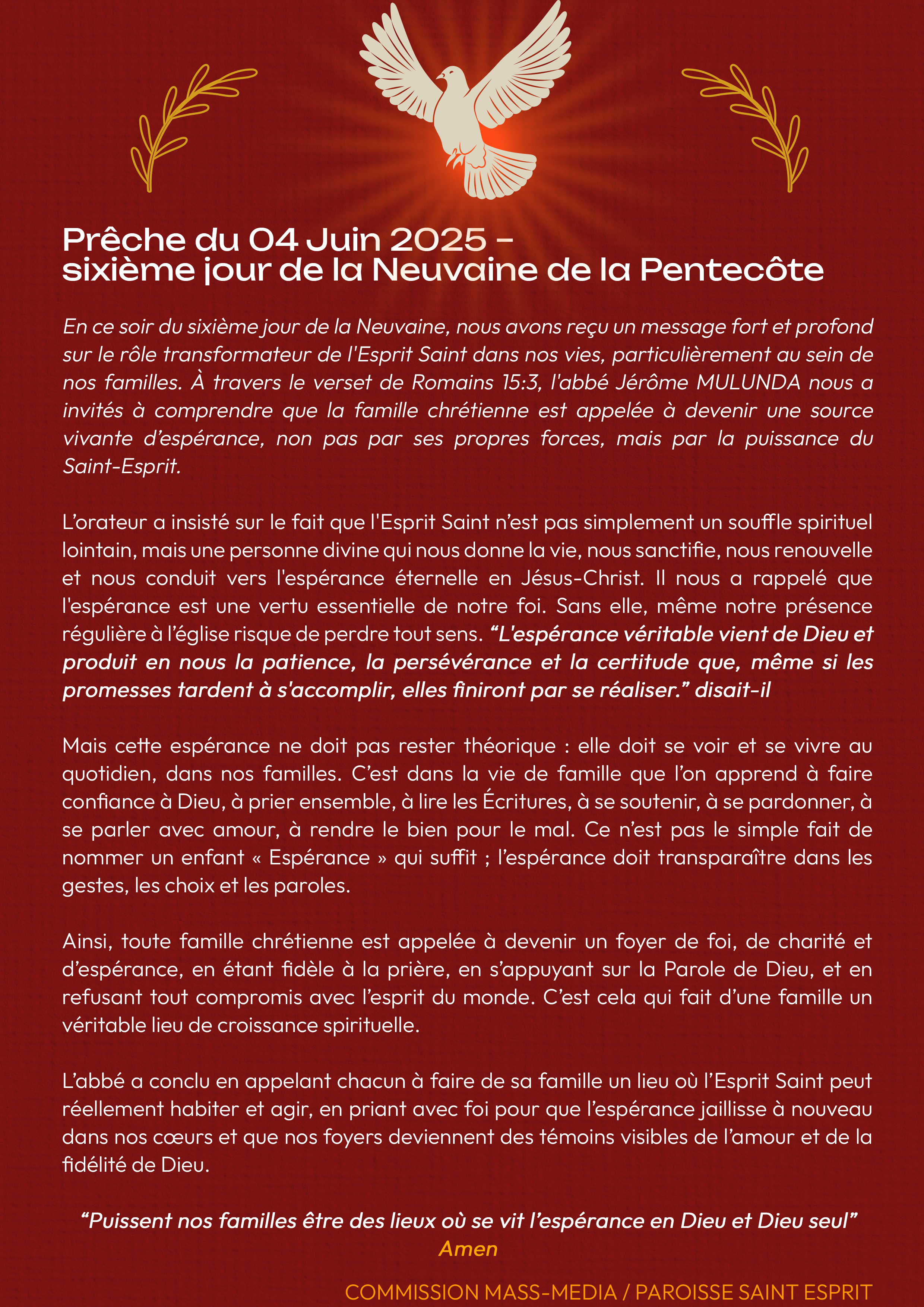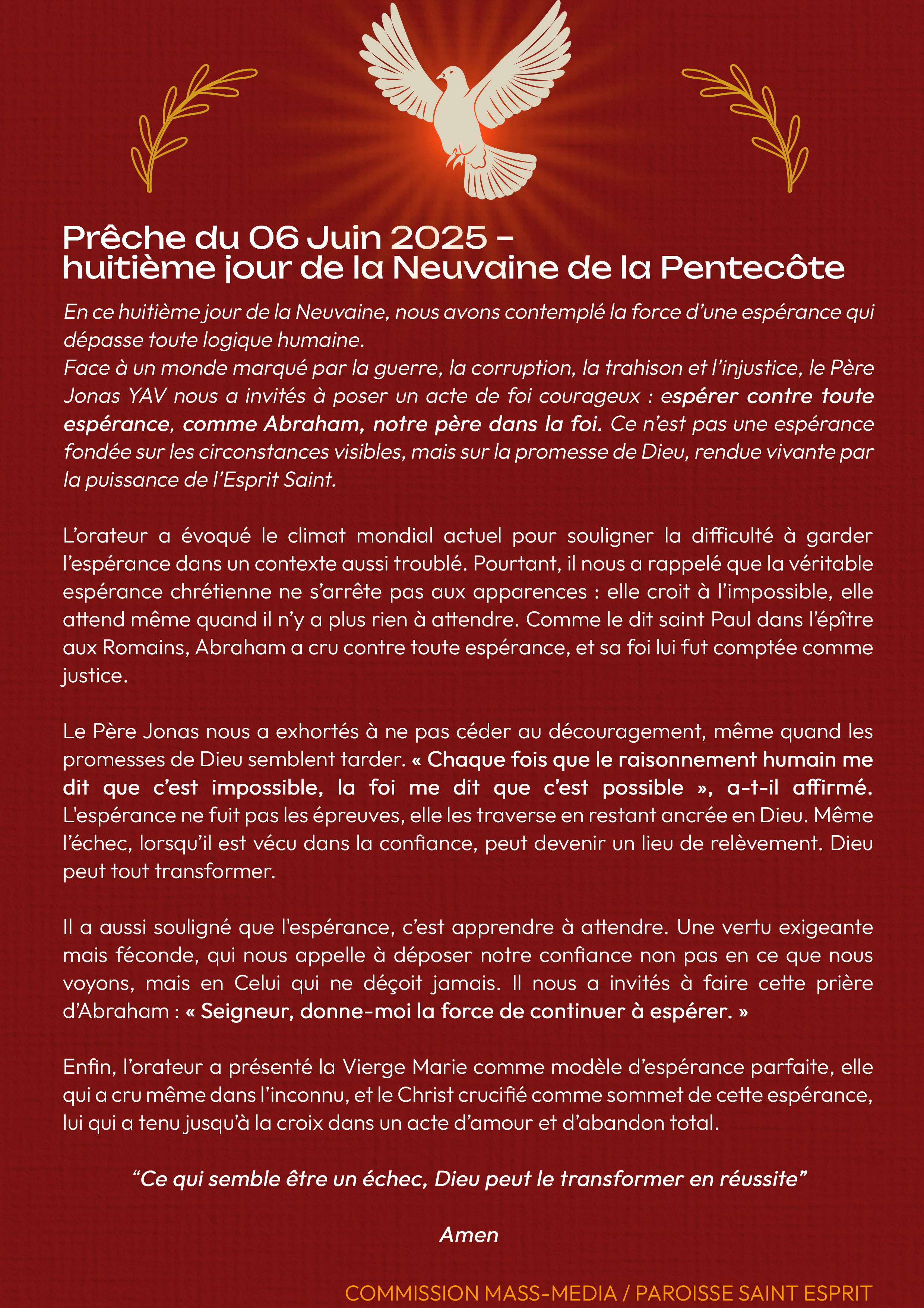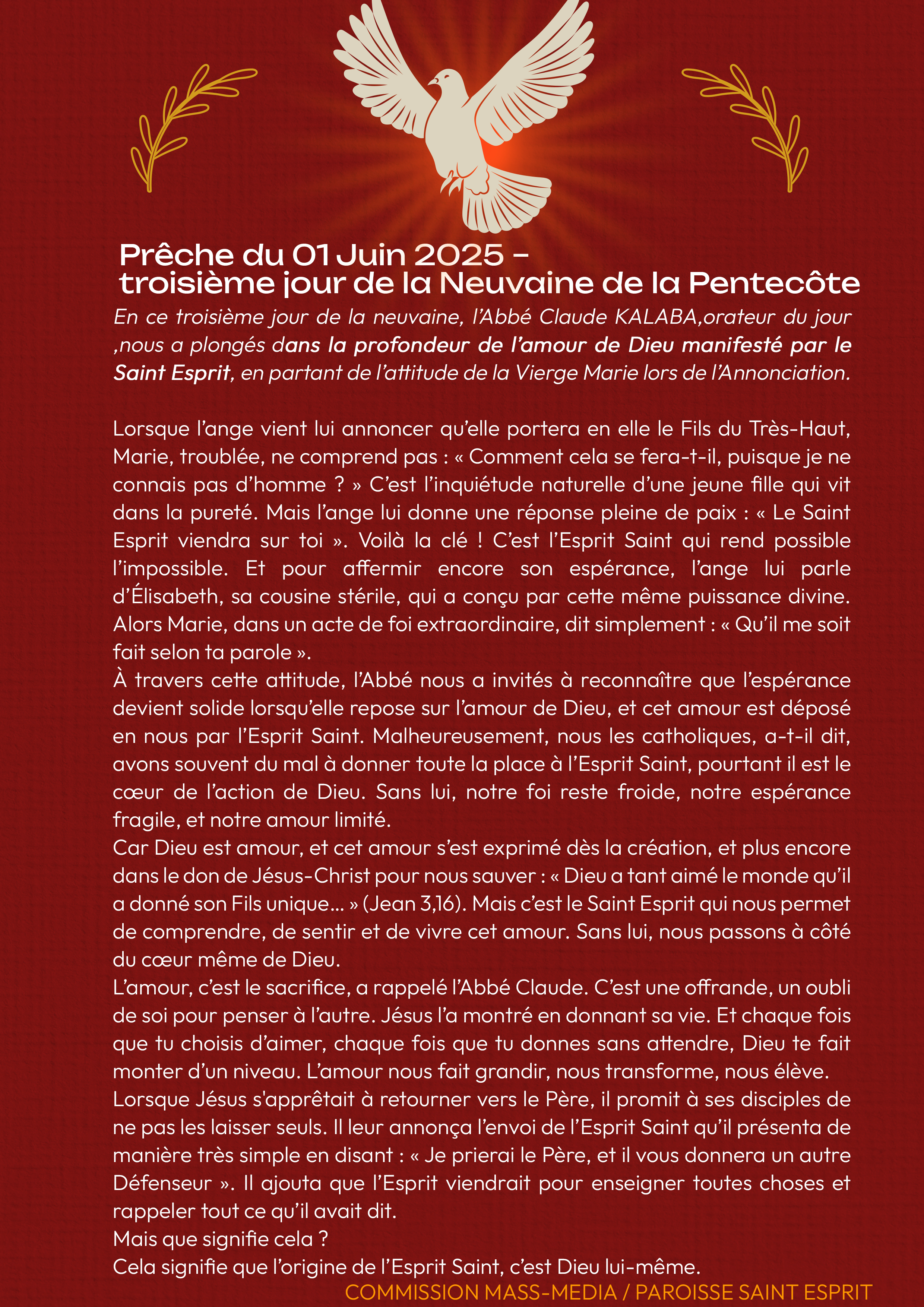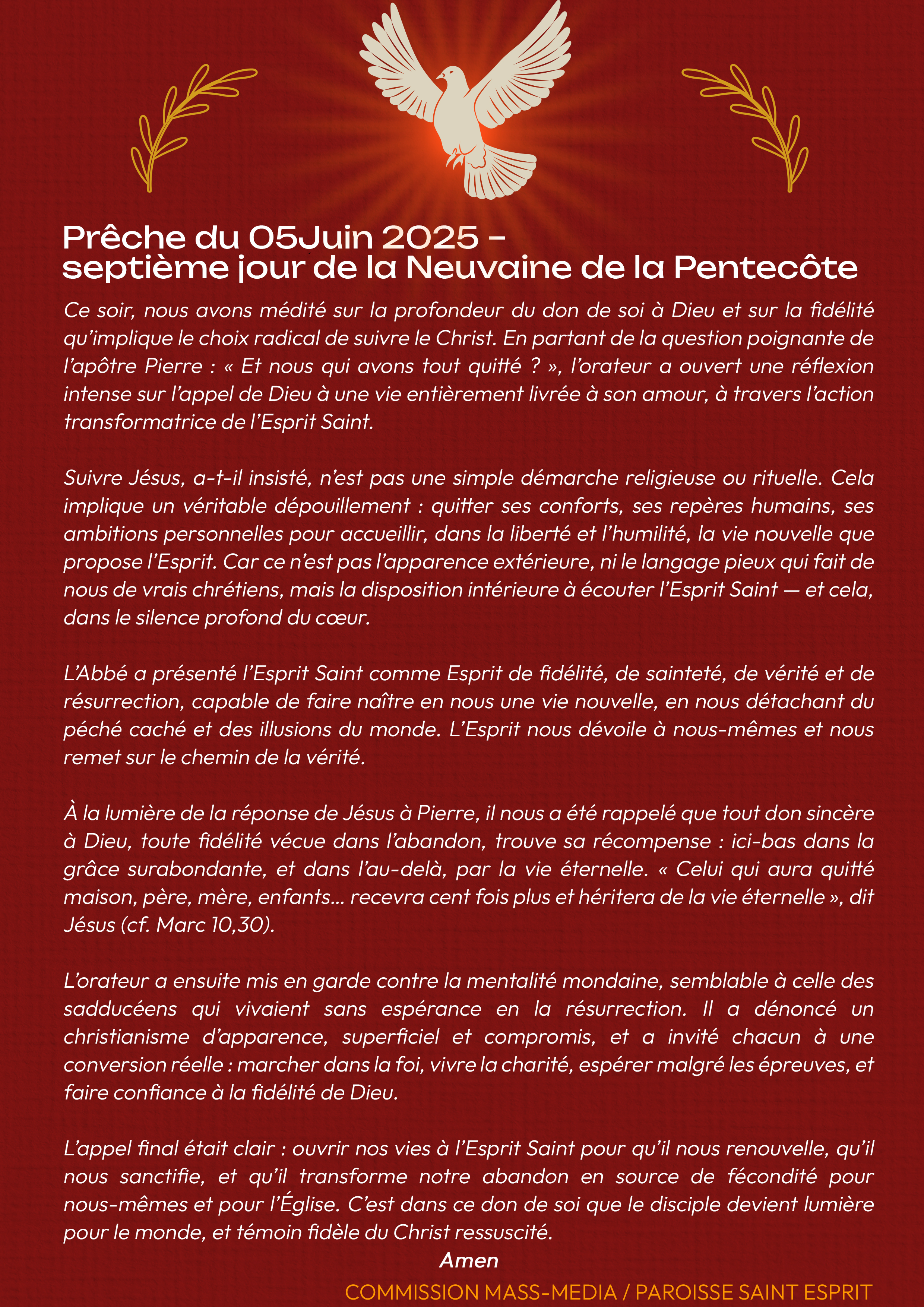 Retrouvez toutes les homélies jour après jour de la neuvaine de la Pentecôte.